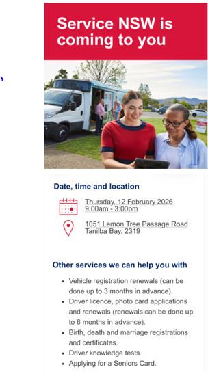 The library augments the mobile service which visits the villages of Tanilba Bay, Mallabula and Lemon Tree Passage on a rotational basis.
